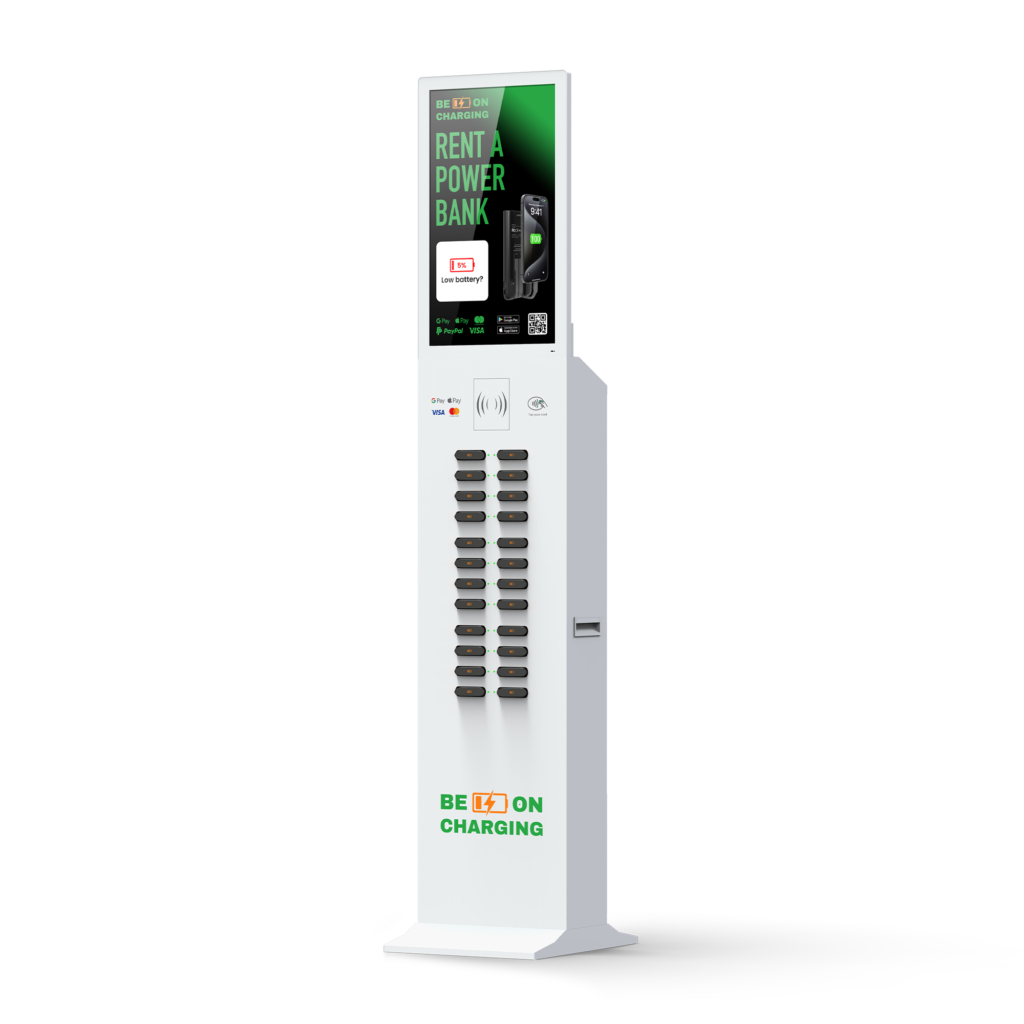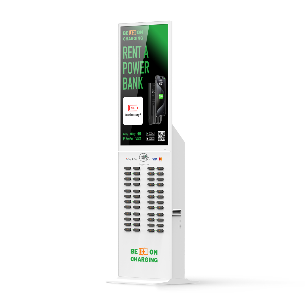 Be On Charging offers portable power bank rental stations that allow users to charge their devices while on the go. These stations are conveniently placed in various locations such as cafes, airports, shopping centers, and more, offering flexibility and convenience. Whether you’re traveling, commuting, or simply out for the day, you can rent a power bank to stay powered without needing to stay tethered to a wall outlet, stuck at a charging station, or having to leave your phone in a locker.